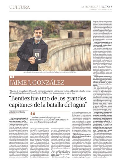 Preguntas y respuestas sobre Simón Benítez Padilla, uno de los grandes capitanes de la batalla del agua en Gran Canaria. Entrevista publicada en La Provincia el 6 de febrero de 2015 tras la publicación gratuita del libro Simón Benítez Padilla, maestro de presas. SBP fue proyectista de grandes presas de embalse y el gran Capitán del Cabildo Insular de Gran Canaria durante los años más difíciles de la batalla del agua: