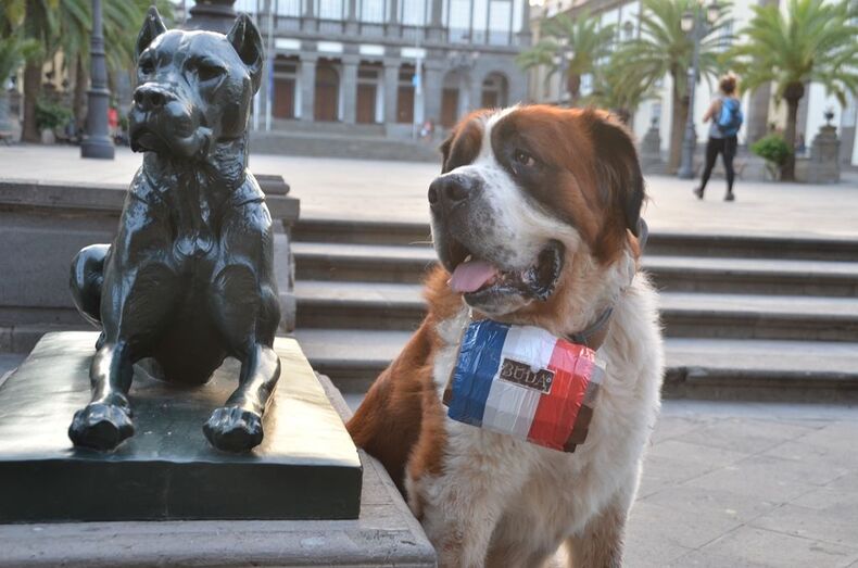 Buda era el San Bernardo de Paco González Concepción, ese perro enorme que muchos verían durante varios años callejeando por la ciudad antigua. Murió hace unos días y la pena de Paco es inmensa. Los que hemos despedido a perros que llevaban muchos años con nosotros sabemos que esa ausencia solo la cura el tiempo y el recuerdo de los días luminosos, porque los perros no hacen otra cosa que enseñarnos a ser un poco más humanos a quienes se suponen que somos racionales e inteligentes. Cuando compraba una barra de pan ya sabía que si me encontraba con Buda me podía ir despidiendo por lo menos de la mitad de ese otro milagro de la vida que es el pan recién horneado en alguna de las pocas panaderías que van quedando en las ciudades del siglo veintiuno. Buda se levantaba desde que me veía aparecer, y yo partía el pan por la mitad como lo parten los grandes camaradas. A veces lo encontraba acostado entre los perros de la plaza de Santa Ana como si él también quisiera ser estatua para eternizarse en nuestro recuerdo. También recuerdo su barril, ese símbolo atávico de los San Bernardos, con los colores de la bandera francesa. Nunca se manifestó políticamente, pero esos colores tenían mucho que ver con su comportamiento. Buda era sereno y pacífico, un bon vivant que solo buscaba el dolce far niente de los perros buenos. Yo nunca seré objetivo al hablar de los perros. Llevo conviviendo con ellos tanto tiempo que podría decir que lo poco que he aprendido en esta vida se lo debo a sus nobles comportamientos. La lealtad, esa palabra cada día más pisoteada en el comportamiento humano, sigue siendo el más noble sentimiento de esos seres de cuatro patas que cuando se marchan dejan una estela imborrable de nostalgias. Entiendo la tristeza inmensa que vive Paco González estos días. La mirada de Buda, el perro sabio, el perro zen, el perro grande y bonachón que arrastraba su pachorra por los adoquines de Vegueta, se ha quedado grabada para siempre en la memoria de todos nosotros. Lo echaremos de menos cuando busquemos una mirada serena en medio de las prisas. Desde hace unos días no hay nadie que reconozca el olor del pan recién horneado en la vieja panadería de la calle Viera y Clavijo. Hoy he partido un pedazo de ese pan y lo he dejado junto al banco en el que solía encontrarme con la serena presencia de un perro viejo que sabía mucho de la vida.