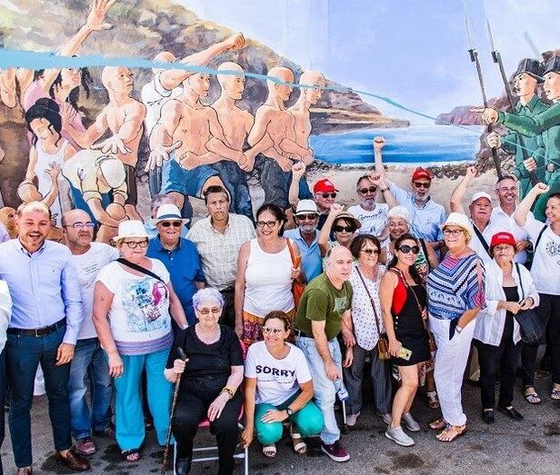 Tras el acto en la cala de Martorell los representantes sindicales y los compañeros y familiares de los ‘sucesos de Sardina’ acudieron a la inauguración del mural dedicado a estos luchadores. El mural fue encargado por el Ayuntamiento de Gáldar y realizado por alumnas y alumnos de la Escuela Municipal de Dibujo y Pintura dirigidos por Raúl Mendoza. En la inauguración intervinieron el secretario confederal de CCOO Unai Sordo, el alcalde de Gáldar Teodoro Sosa, el consejero de Cultura del Cabildo de Gran Canaria Carlos Ruíz y el director de la Escuela de Dibujo y Pintura Raúl Mendoza. Todos denunciaron en sus intervenciones el atentado sufrido por el mural la pasada madrugada. El secretario de Comisiones Obreras agradeció “a todas las personas que han hecho este mural y al Ayuntamiento por promoverlo, y también a quienes hace 50 años se reunieron en Sardina del Norte para defender los derechos de unos trabajadores a los que no se pagaba su salario”. Según Unai Sordo “recordar estos hechos no es abrir herida, lo que pretendemos es que se escriban páginas de nuestras historia que no se han escrito, no podemos pasar páginas de la historia que no hemos leído”. Los actos del aniversario de los 50 años de los ‘Sucesos de Sardina del Norte’ finalizaron con una comida de confraternización y reconocimiento a los luchadores de Sardina organizada por CCOO Canarias.