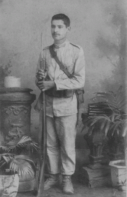 Guardia provincial en el puente a principios del siglo XX, cuya única arma era el sable.