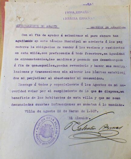 Durante la Guerra Civil y la Segunda Guerra Mundial, las sardinas, los chicharros y las caballas de los chinchorros, ayudaron a mitigar el hambre que pasaron en otras partes del territorio nacional. Como curiosidad se adjunta el bando del alcalde Valentín Armas, de 22 de marzo de 1937, en que obliga vender las sardinas y demás pescado a los residentes en la Villa antes que a los forasteros, para que estos puedan venderlas y paliar el paro obrero que había en Agaete. (archivo municipal de Agaete)