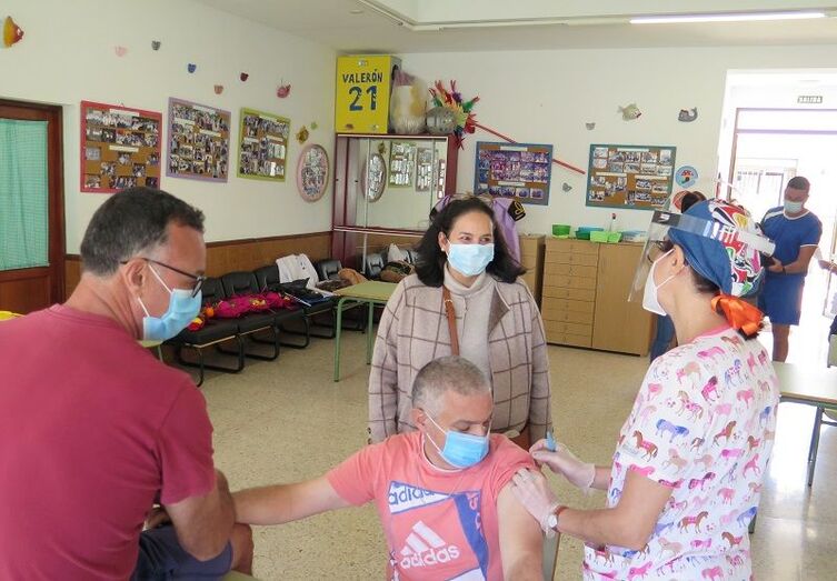 Isabel Rodríguez hizo llegar también a ambos responsables su agradecimiento por la excelente labor que están desarrollando los sanitarios del Centro de Salud de Santa María de Guía que forman parte del equipo de vacunación en el municipio, manifestando que precisamente hoy se han desplazado al Centro Ocupacional para administrar la primera dosis a los usuarios y trabajadores de éste “una labor que realizan con un cariño y una atención exquisita al igual que han hecho ya con nuestros mayores en la Residencia Tarazona y en el Centro de Día”, explicó.