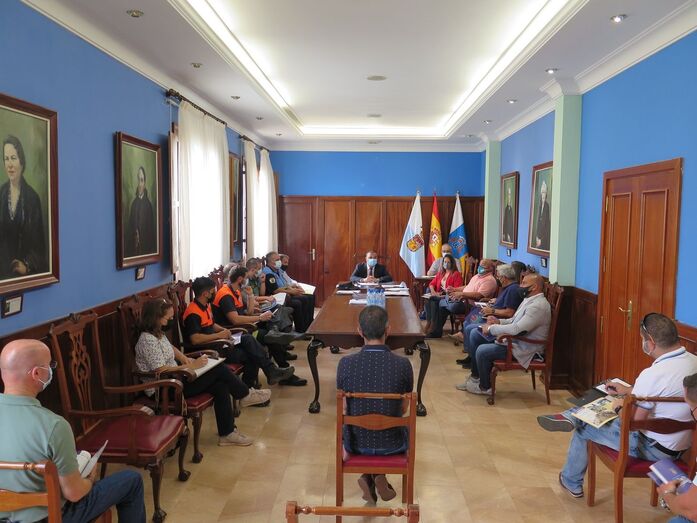 El alcalde de Guía, Pedro Rodríguez, presidió hoy la Junta Local de Seguridad de las fiestas patronales de La Virgen 2021, un acto celebrado en el salón de plenos de las Casas Consistoriales en el que estuvieron presentes las concejalas de Fiestas, Ainhoa Martín, y de Cultura, Sibisse Sosa; el concejal de la Policía Local, César Medina; el Subinspector-Jefe de la Policía Local, Antonio Mederos; el coordinador del Plan de Seguridad, César García; representantes del Puesto de la Guardia Civil y del Destacamento de Tráfico de la Guardia Civil de Santa María de Guía, de la Agrupación Local de Protección Civil, de la Asociación de Taxis de Santa María de Guía y del Consorcio de Bomberos.