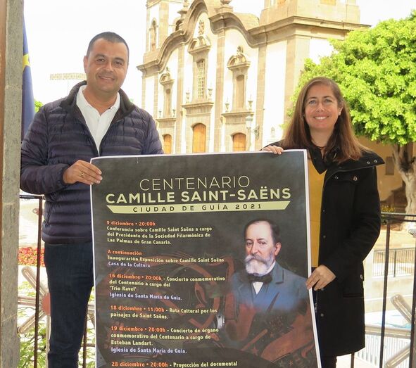 Santa María de Guía celebrará a lo largo de todo diciembre un programa de actos para conmemorar el centenario del compositor Camille Saint Saëns, un homenaje al músico francés estrechamente vinculado a este municipio en el que pasó largas temporadas durante sus visitas a Gran canaria a finales del siglo XIX y comienzos del XX. El alcalde, Pedro Rodríguez, acompañado de la concejala de Cultura, Sibisse Sosa, presentaron hoy los actos previstos en esta ciudad hasta el próximo 30 de diciembre con motivo de la conmemoración de esta efemérides.