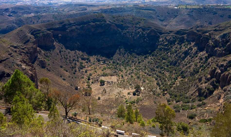 Vuelve al mismo lugar, con la imagen del sitio que visitó por primera vez hace, al menos, una década. Era un lugar agradable, con un mirador interesante. En una esquina, un prismático de pago con el que podías ver el fondo de la Caldera de Bandama. Allí, tan cerca, pero tan lejos, la casa, el alpendre, los terrenos de ceniza volcánica cultivados, y el único habitante afanado en las labores agrícolas bajo un sol de justicia.