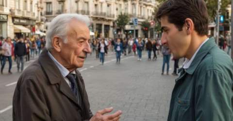 Le llamo. Le grito. Salto, brinco, corro a su encuentro y me paro justo frente a él. Su cara de asombro debe ser más o menos igual que la mía. Empiezo a hacerle preguntas, me doy cuenta de que hablo atropelladamente y más rápido de lo normal. Encima, le estoy hablando en inglés, intentaré hacerlo en español, ¡quizás así me entienda!