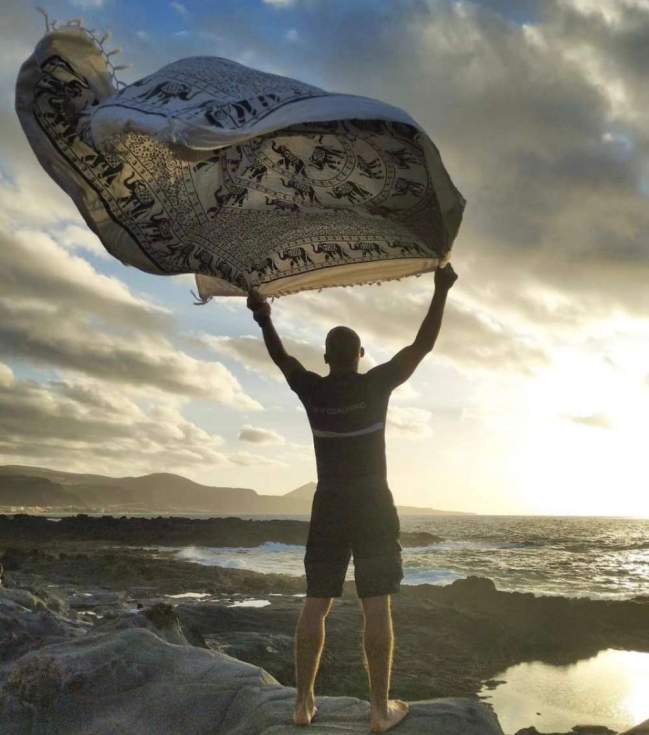 Muchas veces se dormía contando todas las montañas canarias, que se sabía de pe a pa, y despertaba asustado de su repetido sueño. Así estuvo siete días, hasta que una tarde, pasando delante de una tienda árabe, vio en el escaparate un pañuelo palestino, en el que se desplegaban montones de elefantes en fila, todos con las trompas levantadas, como en sus pesadillas. Sin pensarlo, entró en la tienda para comprar el pañuelo y luego, siguiendo un impulso, un pálpito, se fue al Charco de las Palomas, cerca del Puertillo, miró para la montaña de Ajódar (el Teide no se veía esa tarde) y ondeó el pañuelo al viento.