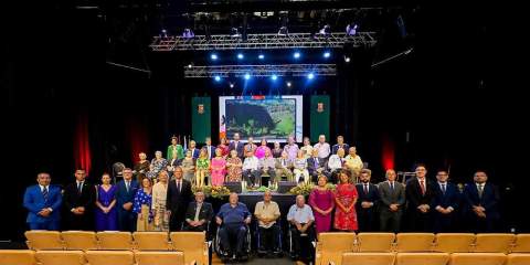 Una vez en el frontis del Santuario de Santiago, los premiados recibieron los reconocimientos de manos del alcalde de la ciudad, Teodoro Sosa Monzón; el concejal de Desarrollo Socioeconómico, Tine Martín Ojeda; y otros miembros de la corporación municipal en una entrega que contó con el rector del Santuario, Manuel Reyes Brito.