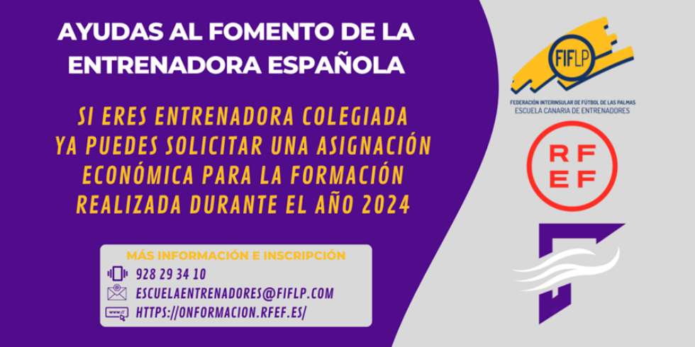 La Federación Interinsular de Fútbol de Las Palmas, a través de su programa FUTureFEM Las Palmas, se ha acogido a este programa de subvenciones de la RFEF con el fin de fomentar e incrementar la cifra de entrenadoras en próximas temporadas. Esta ayuda, se une a la anunciada hace unas semanas para las entrenadoras interesadas en cursar este año la titulación UEFA B, cuyo plazo de inscripción se cierra el próximo 10 de septiembre.