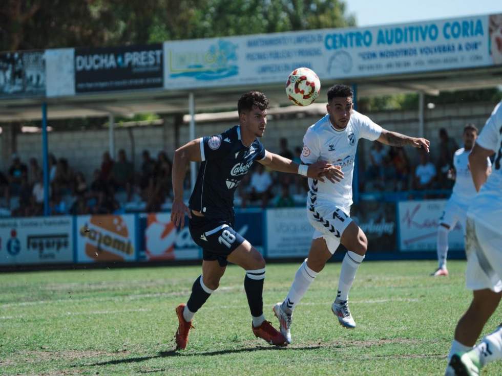 CD Coria (1): Marcos, Llerena, Telles (Mercadal 66), Margallo (Samu Manchón 56), Sergio Gómez, Cedenilla, Asiel, Chavalés, Copete (Carmona 66), Iñaki (Hamza 85), Moi Parra (Mikel Carro 56). Entrenador: Raimundo Rosa