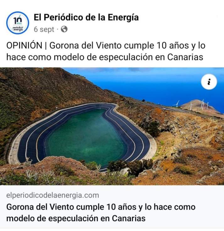 Contundente artículo del Ingeniero Álvaro Artiles, publicado en “El Periódico de la Energía”, sobre el modelo especulativo y falsamente publicitado de la Central Gorona del Viento, en la isla de El Hierro.