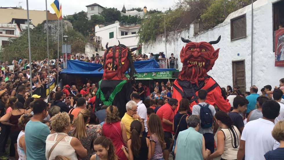 Con sus tres metros de altura y más de 20 kilos de peso asustan a niño y mayores que se encuentran a su paso. Tras ellos, los músicos tocan el tajaraste cerrando la comitiva. Esta ofrenda a la Virgen de Las Angustias continúa hasta que la imagen sale en procesión.