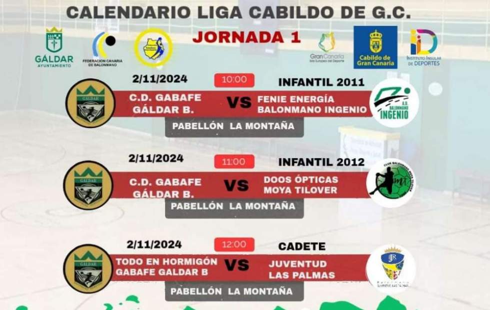 El pasado sábado día 2 de noviembre dió comienzo la Liga Cabildo de Gran Canaria para el Club GaBaFe Gáldar Balonmano. Los tres partidos de la jornada se disputaron en el Pabellón de La Montaña donde se coronó una bonita mañana de balonmano.