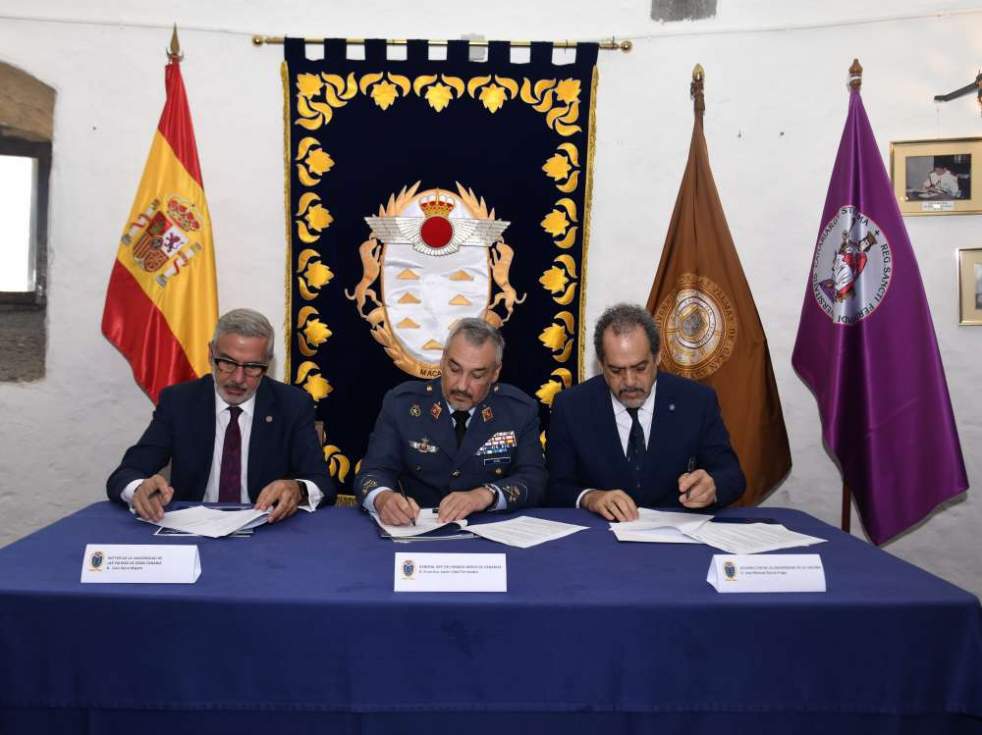 El acto de la firma se formalizó por el general jefe del Mando Aéreo de Canarias, el rector de la ULPGC y el vicerrector de Docencia de la ULL, en representación de las respectivas entidades.