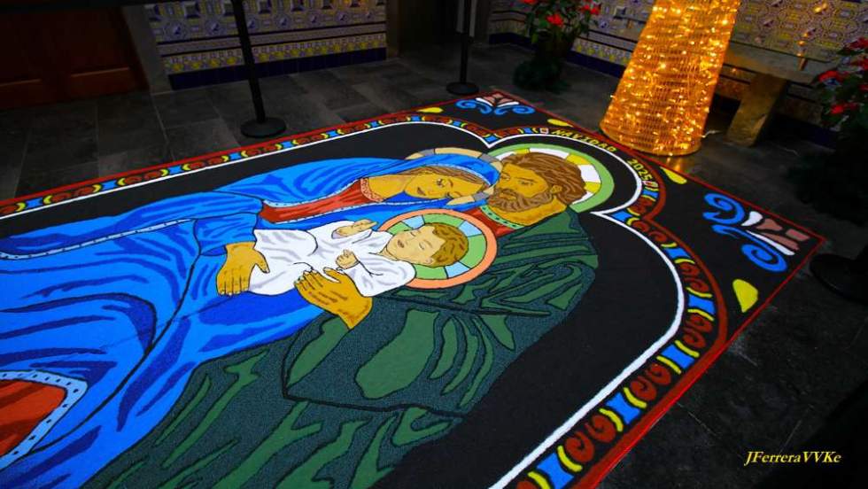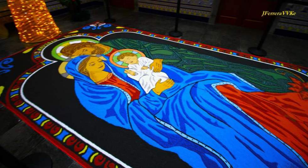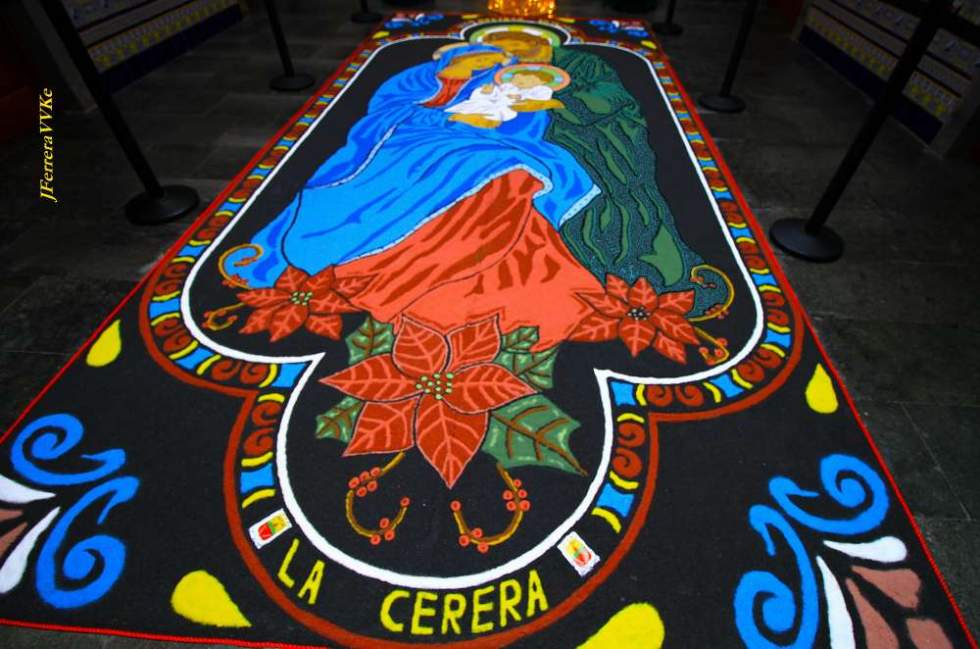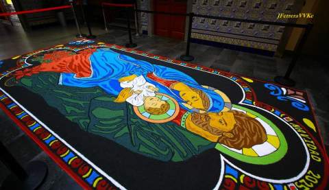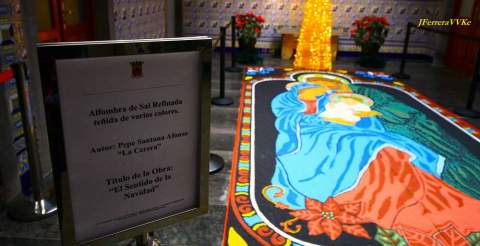 Bien es verdad que su arte es efímero y sobresale en el mundo de las alfombras: otra opción que define a la persona. Actualmente expone una de sus obras en el patio del Ayuntamiento aruquense donde una hoja cerrada de la puerta de entrada limita la visión de la Casa Consistorial; además, nos fue imposible sacar una foto desde lo alto, que amplía la visión.