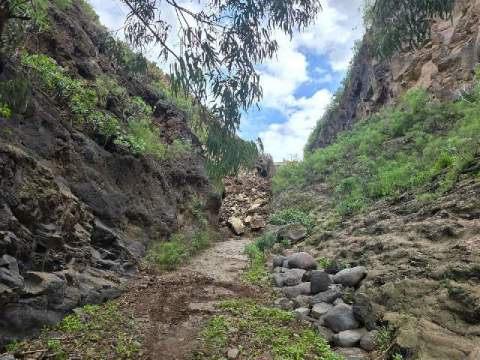 Collage sepultación del barrancoTurcón alerta que con dicho derrumbe queda bloqueado el Corredor Paisajístico a la altura de la trasera de la Ermita de San José de Las Longueras (Telde). Las actuaciones que han producido este desprendimiento y bloqueo han sido denunciadas ante el Ayuntamiento de Telde – Policía Verde, Agencia Canaria de Protección del Medio Natural y Consejo Insular de Aguas de Gran Canaria.