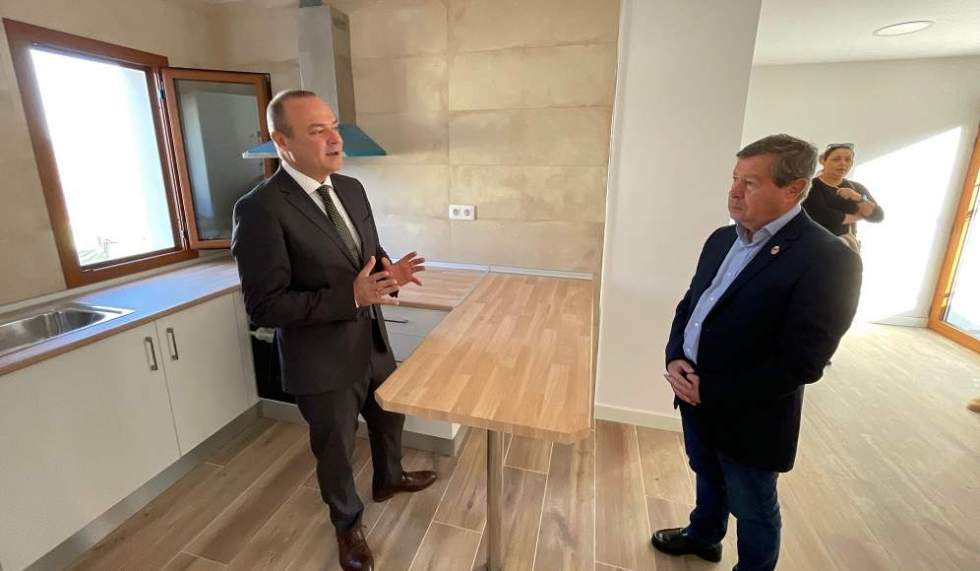 El vicepresidente Augusto Hidalgo visita junto al alcalde de Tejeda, Francisco Perera, los nuevos hogares surgidos tras la intensa rehabilitación al que fue sometido el inmueble que albergó antiguamente la escuela de Lomo Los Santos