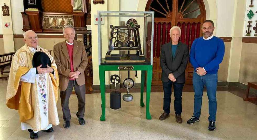 El reloj mecánico fue rescatado de la antigua ermita de San Bartolomé y se ha colocado en la nueva Iglesia para que todos y todas puedan contemplarlo y disfrutarlo