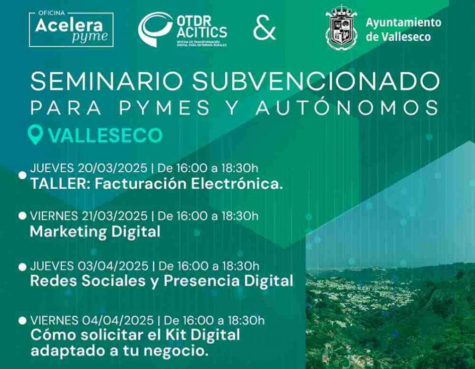 El ciclo de talleres abarca las ponencias de "Facturación Electrónica"; "Marketing Digital"; "Redes Sociales y Presencia Digital" y "Cómo Solicitar el KIT Digital Adaptado a tu Negocio", a desarrollar los jueves y viernes en fechas del 20 y 21 de marzo, y 3 y 4 de abril