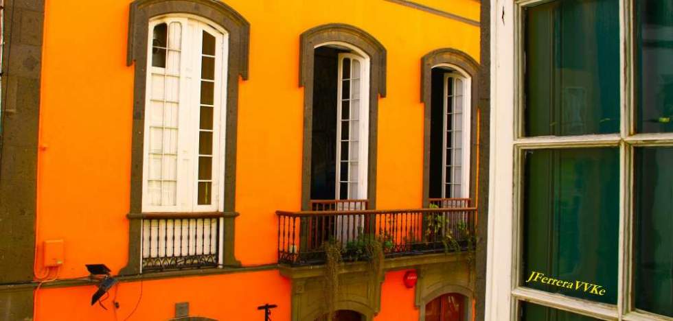 "...la palmera que no vemos no solo levanta su presencia tranquila y silenciosa, sino que, además, realza la vetusta cara del edificio y nos lo devuelve como si nuevo fuera..."