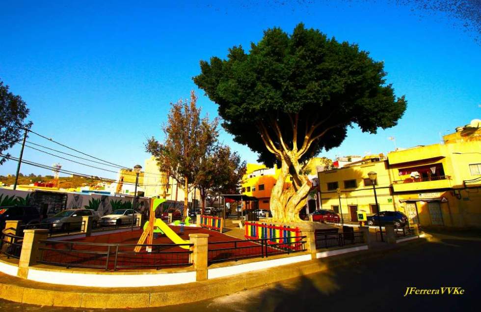 "...la palmera que no vemos no solo levanta su presencia tranquila y silenciosa, sino que, además, realza la vetusta cara del edificio y nos lo devuelve como si nuevo fuera..."